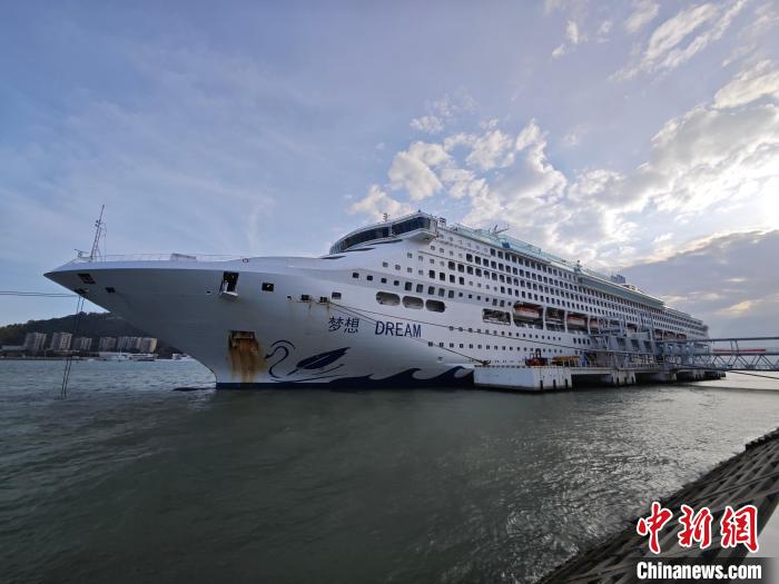 1月14日,“梦想”号邮轮停泊在三亚凤凰岛国际邮轮港。 张月和摄